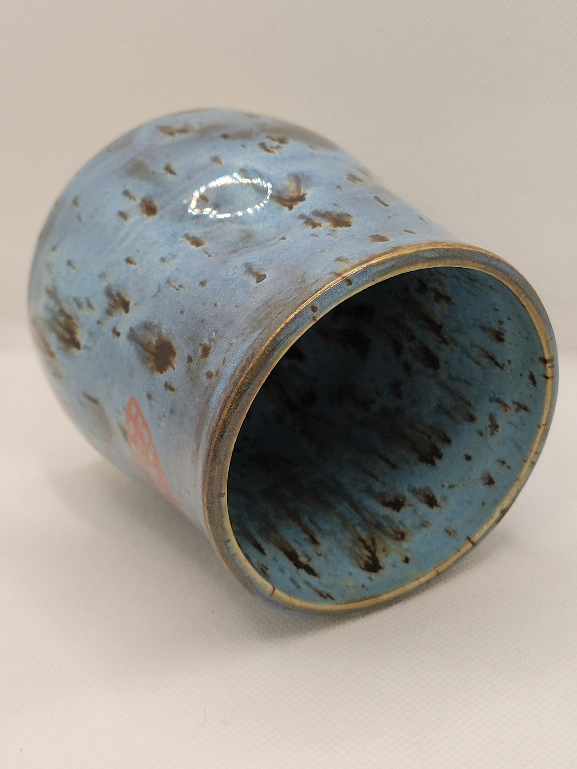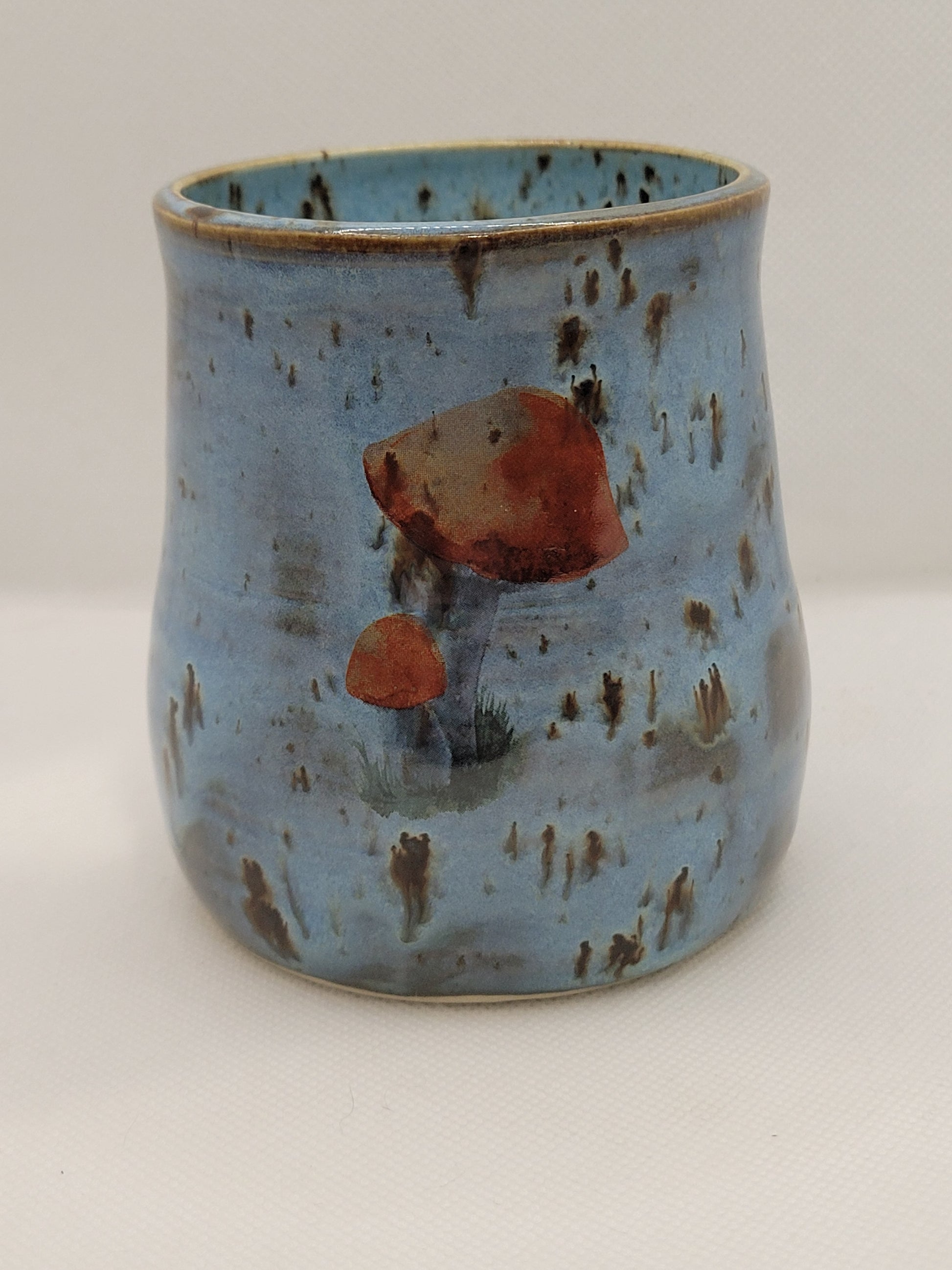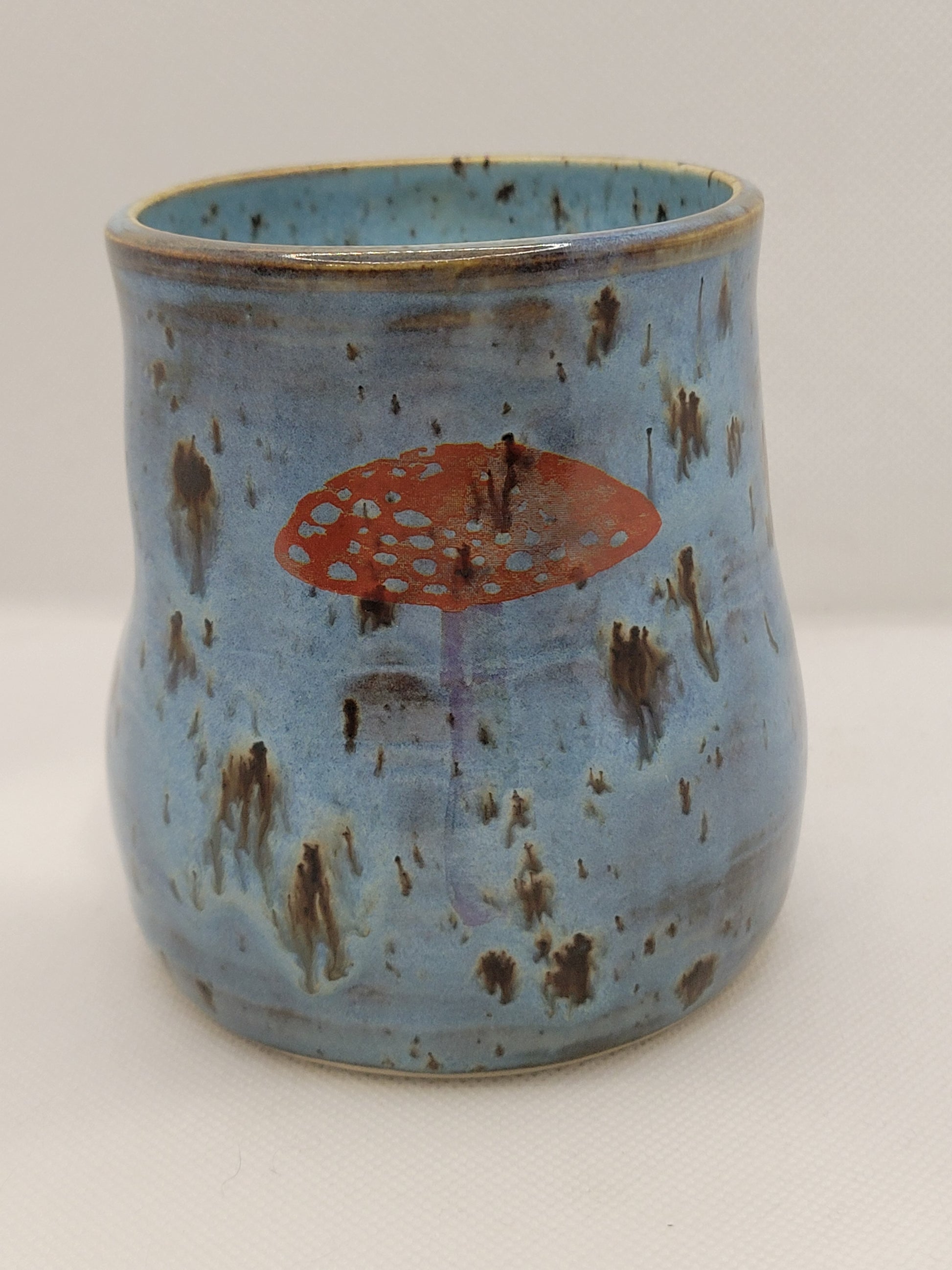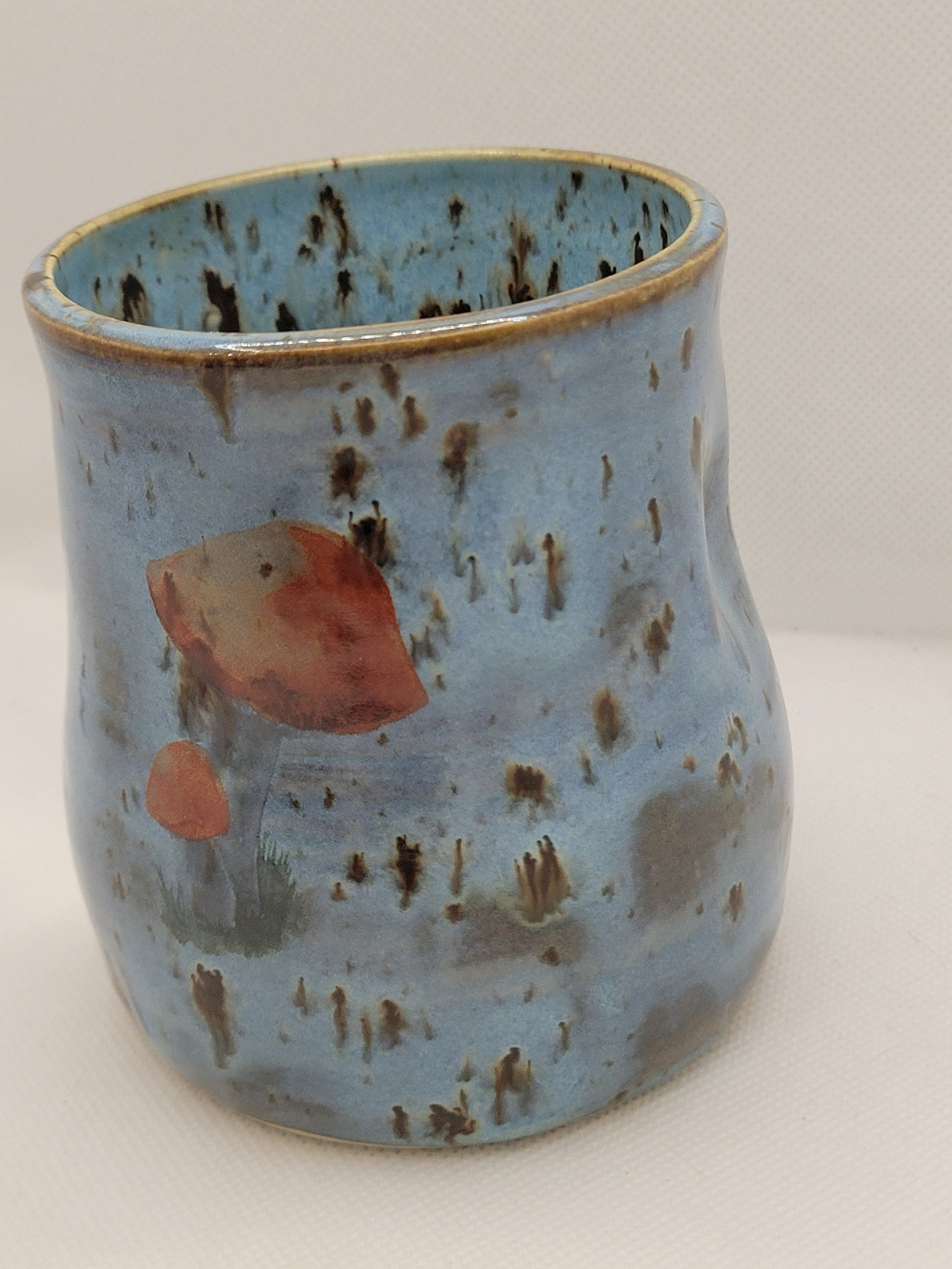 Add this charming little dimple cup to your collection of one of a kind art! Holding 12oz of your favorite liquid, this mushroom cup is just perfect for anyone who loves these little fungi! On all sides of the cup, the drinker and anyone else can enjoy the company of the mushrooms and their added style. Dishwasher and microwave safe, these fungi are ideal for easy care, and max enjoyment as the years come and go.