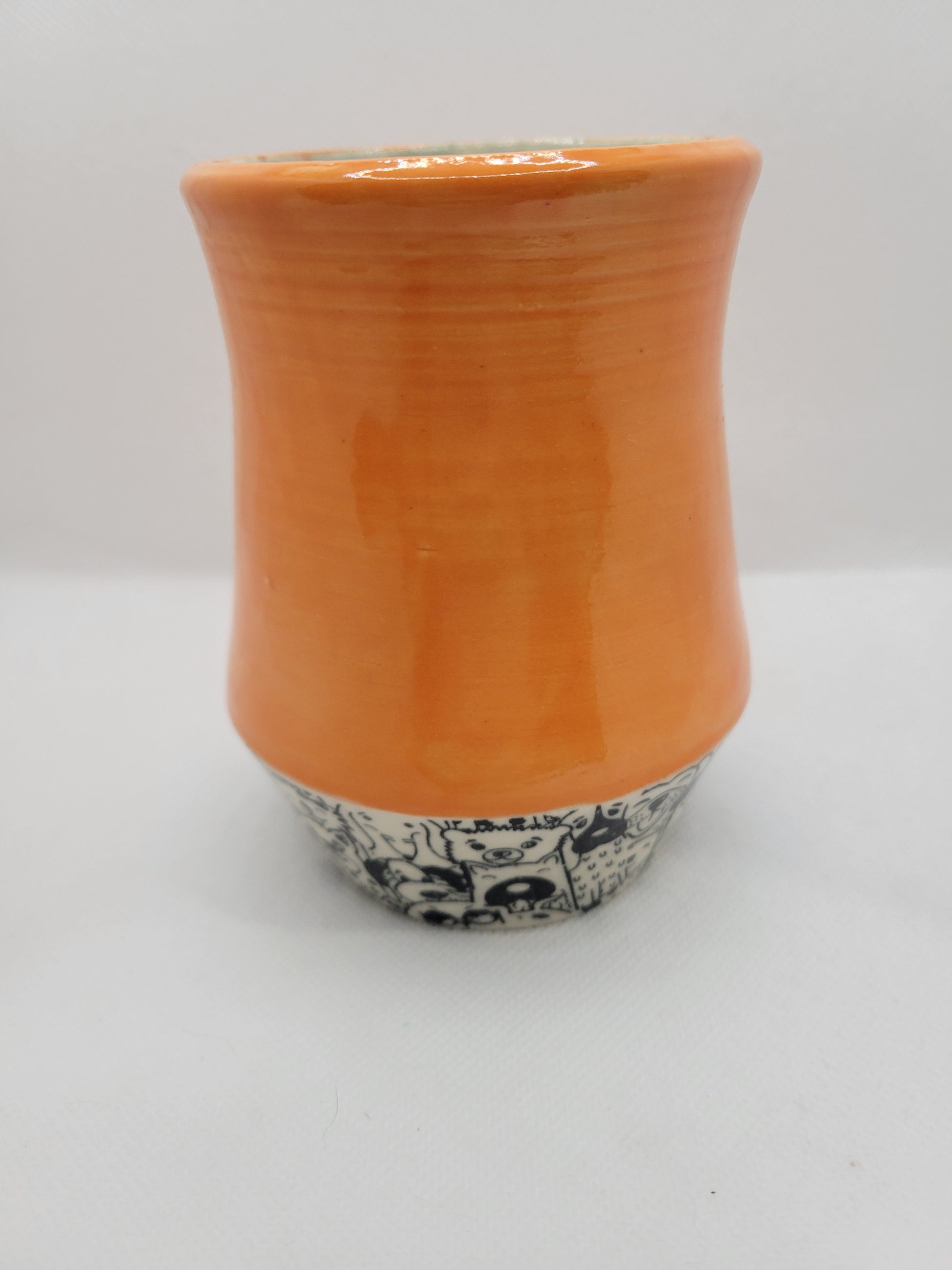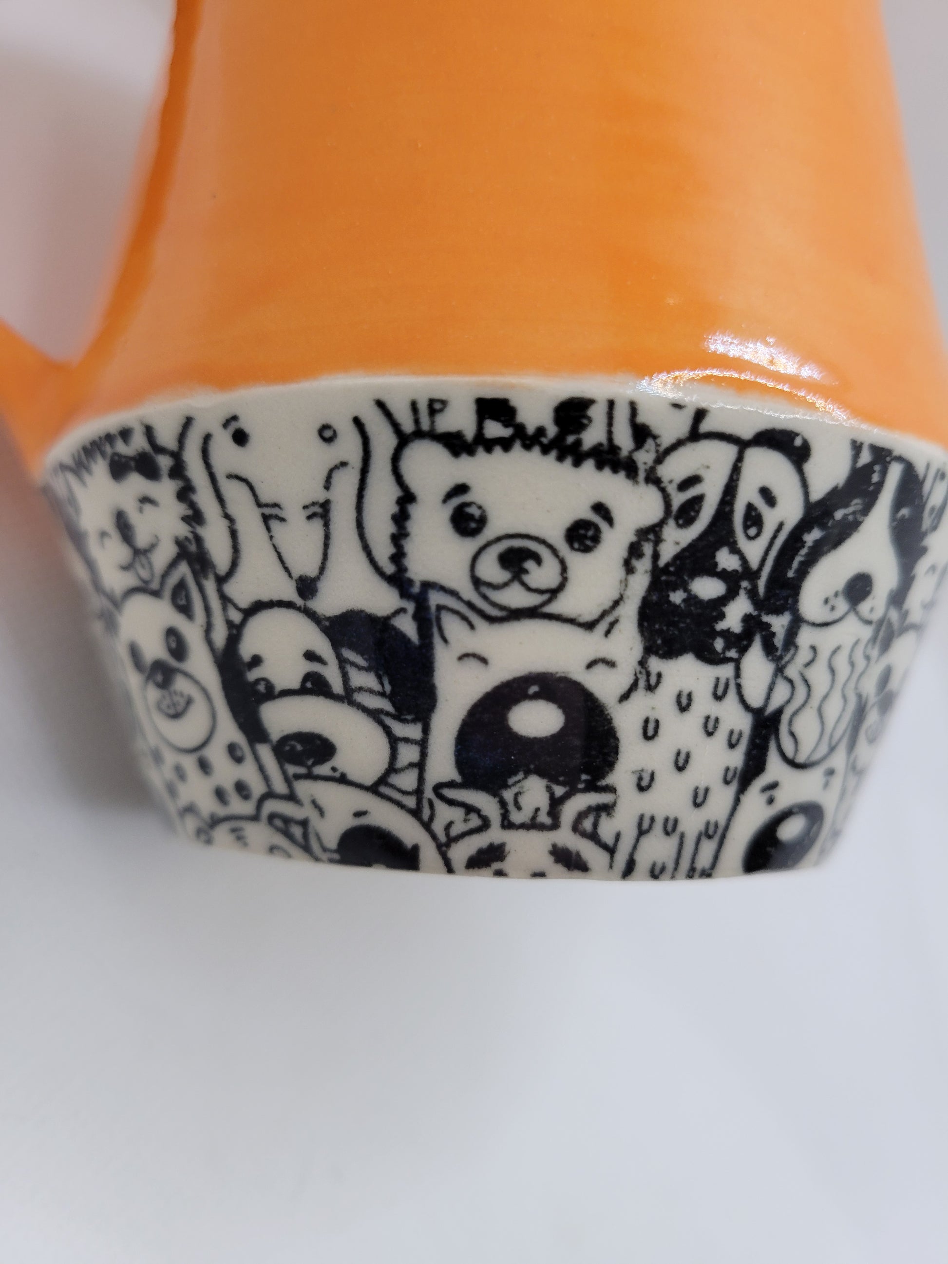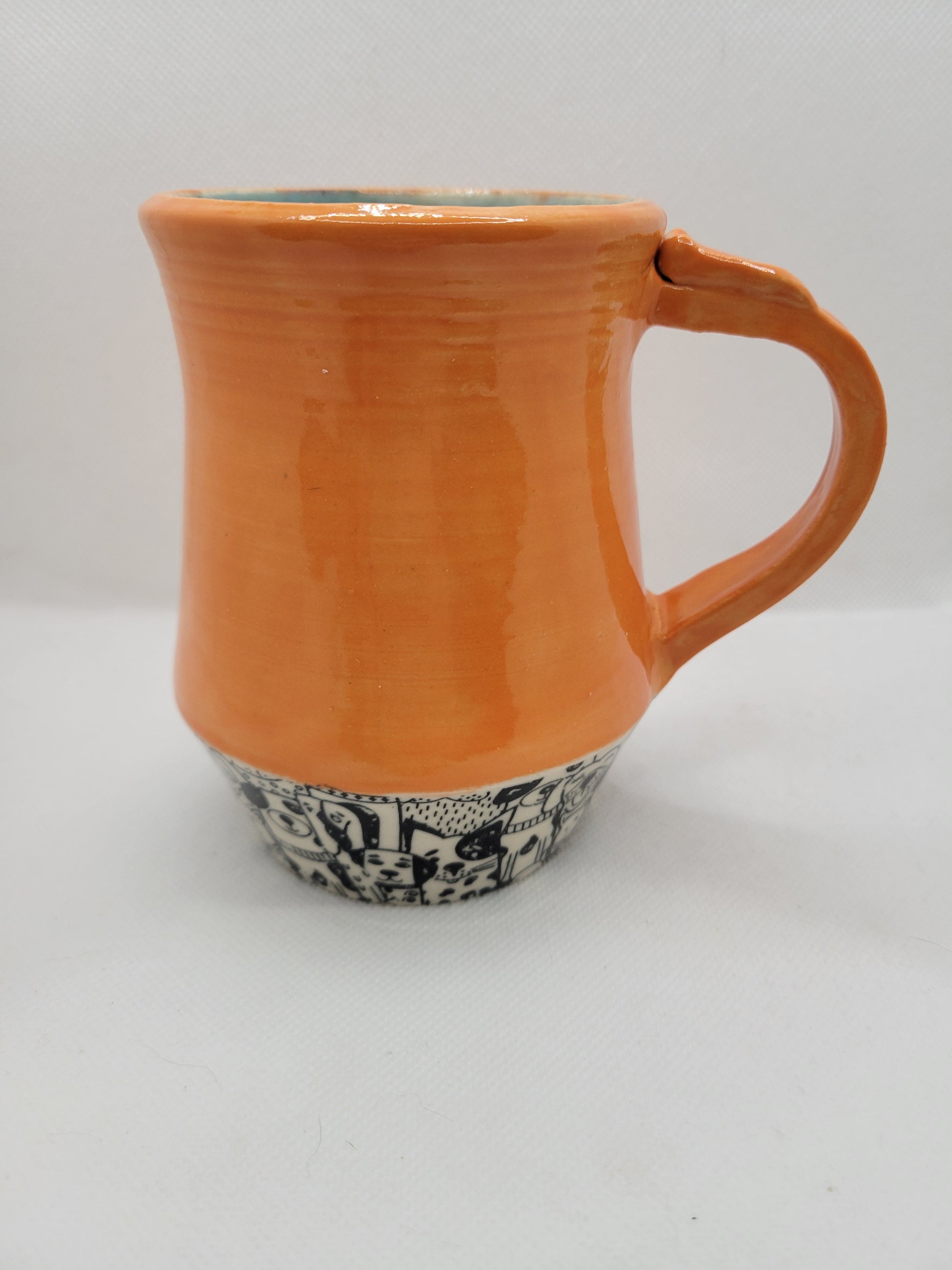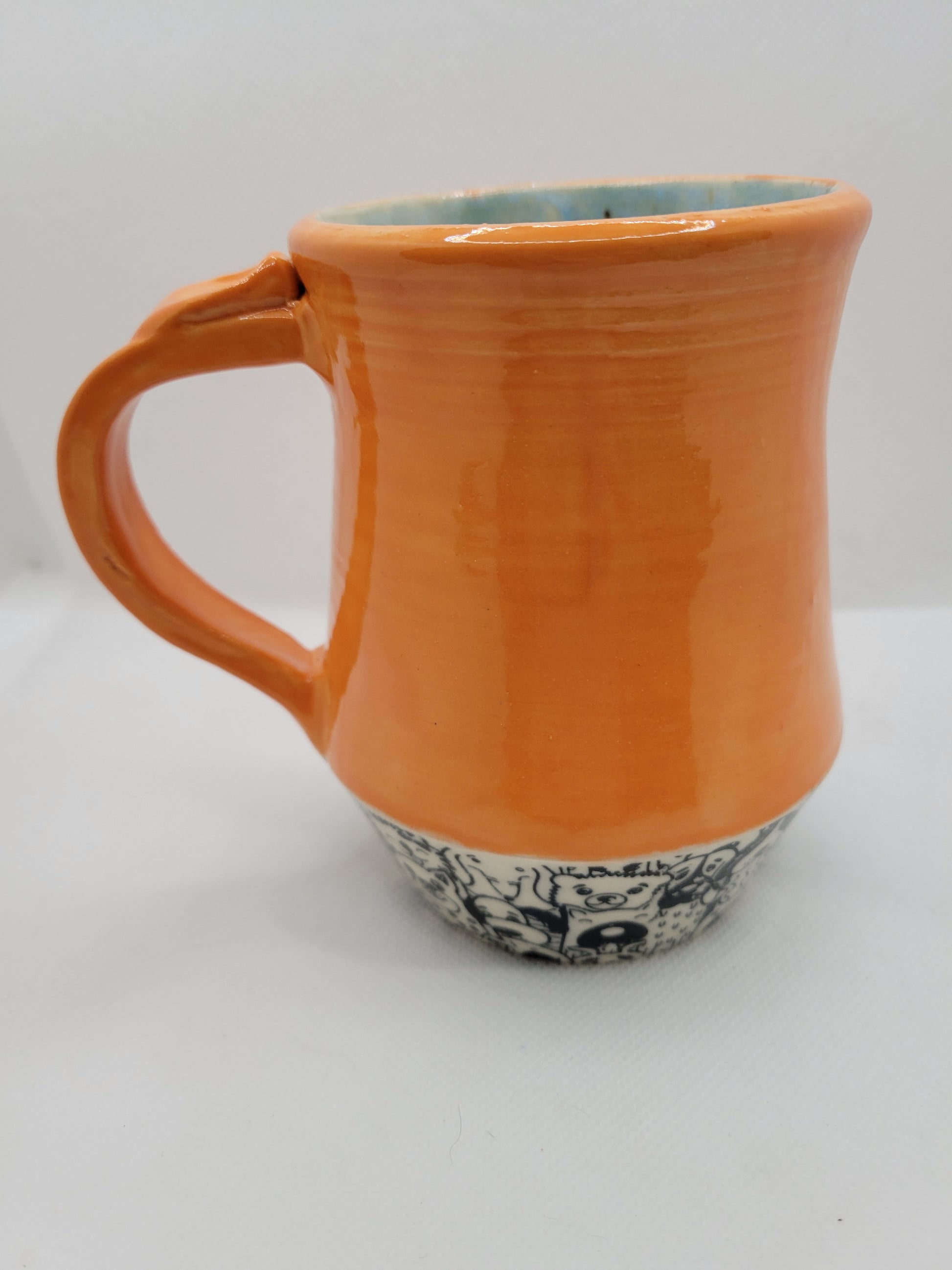 Dog lovers mug alert! Pup in Pie is a stunning mug with pumpkin orange which happens to be my dogs absolute favorite treat, and then so many puppies down below! Embrace your love for dogs with this cute dishwasher and microwave safe mug. Holding 12oz, join your pup with a refreshing drink!