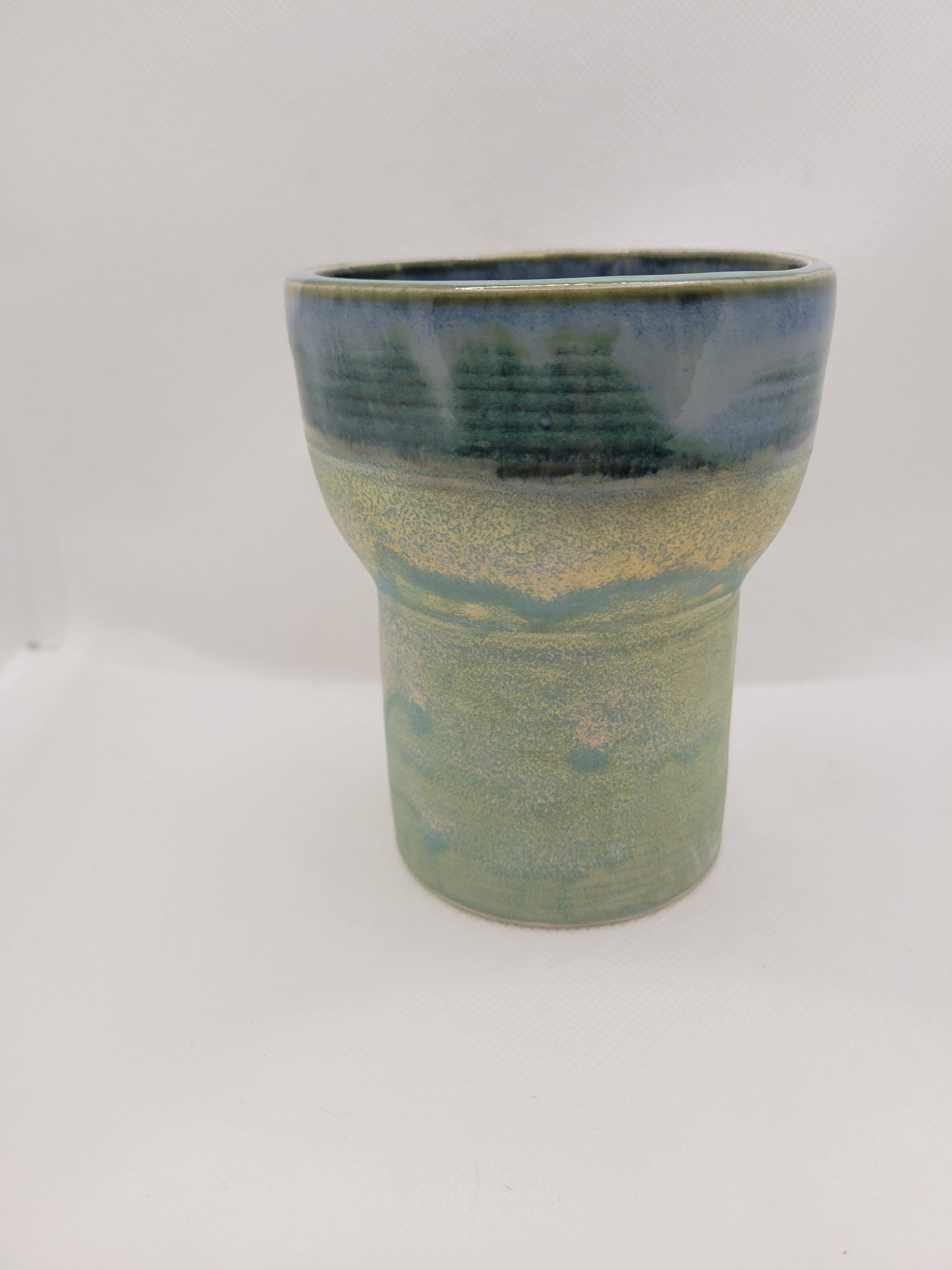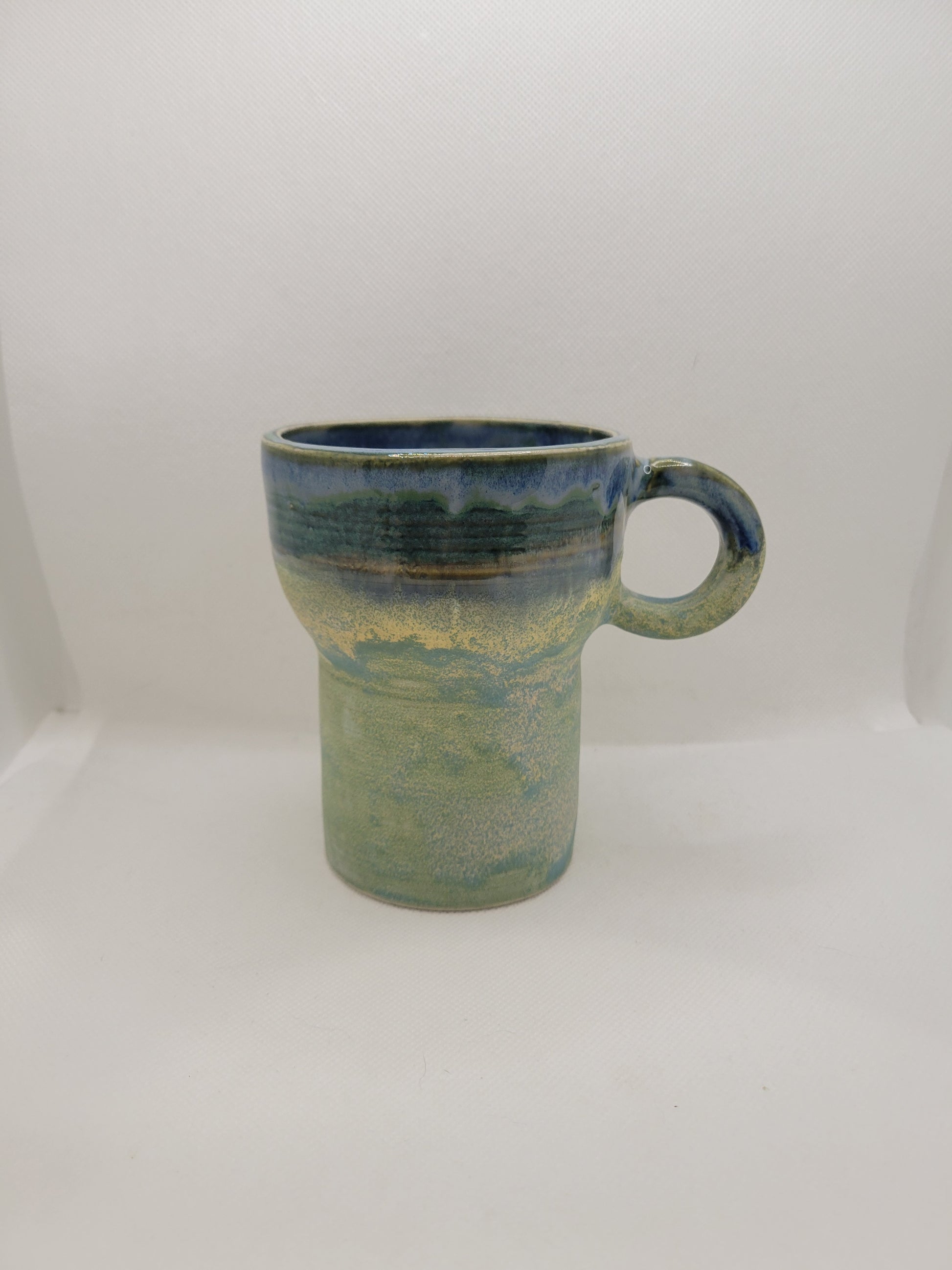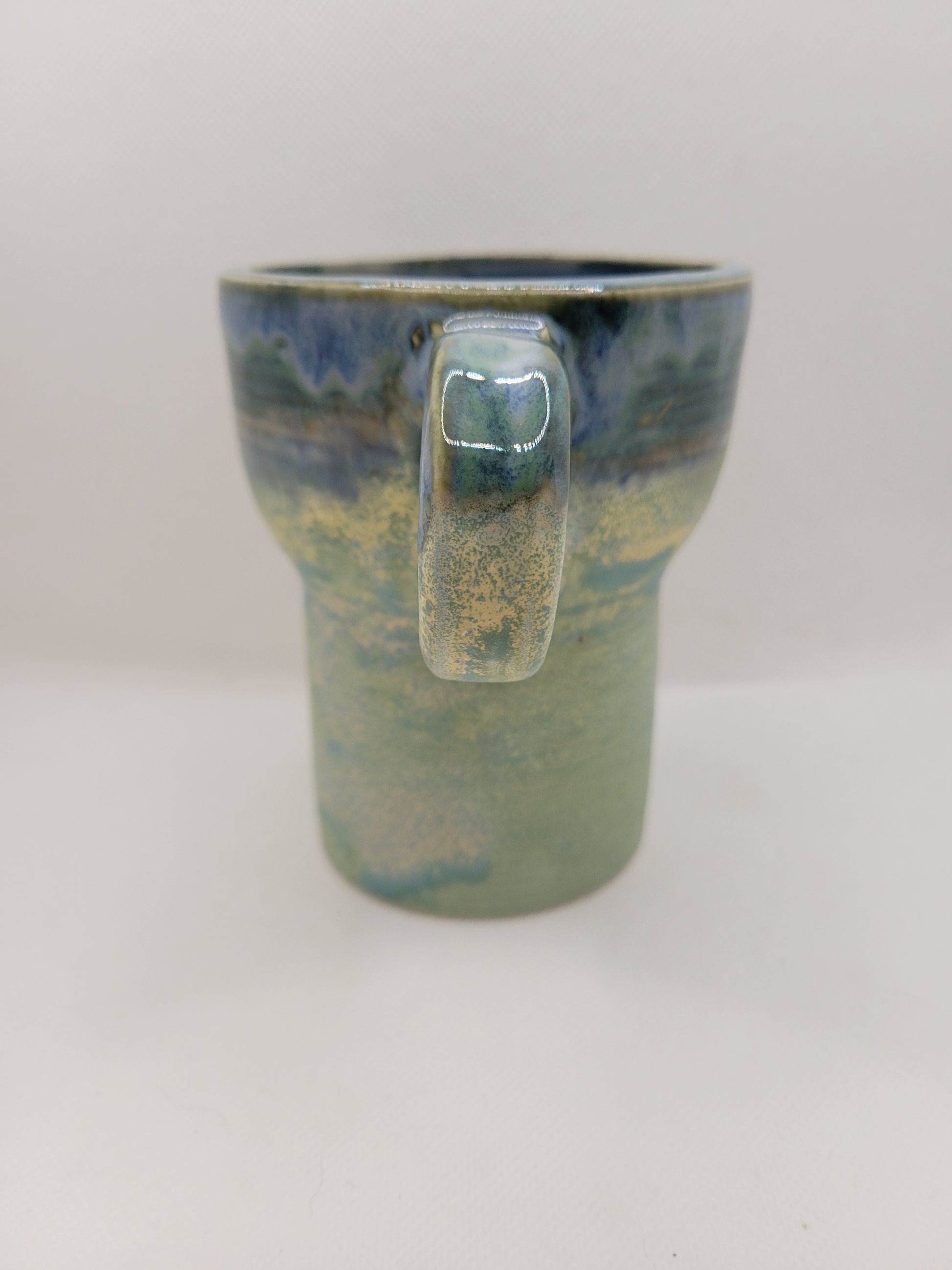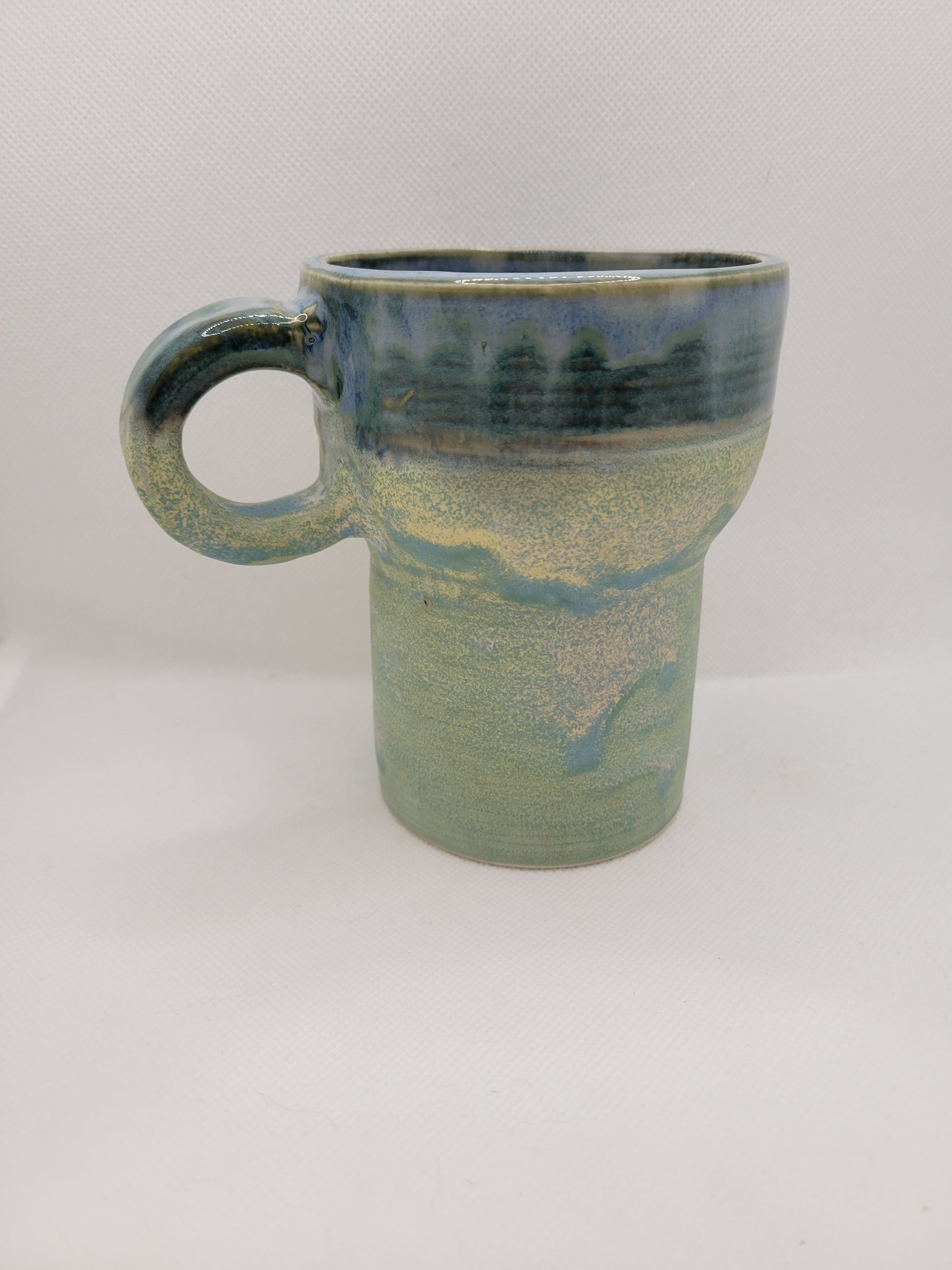 Inspired by the soft blue-green hues of coastal tide pools, this hand made stoneware mug brings a little piece of the ocean to your morning routine. Holding 14 oz, it's the perfect size for your morning coffee or tea, and the shape fits comrtably in most car cupholders, making it ideal for busy mornings on the go. Dishwasher and microwave safe, this one of a kind mug is perfect for the constant rush of life.